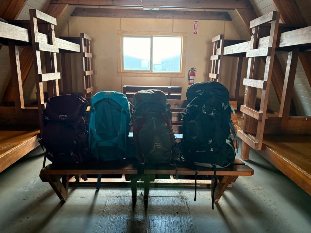 When Chloe and I reached the hut we took all of our gear off, hung our wet clothes and chose bunks.