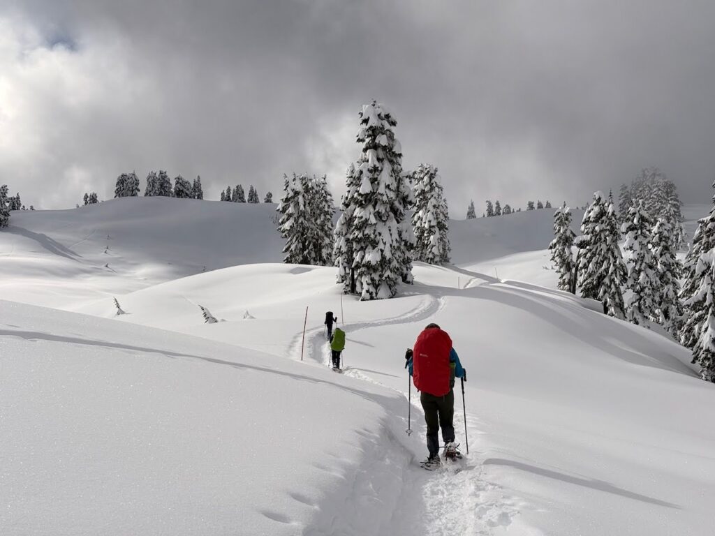 We were very relaxed so we left around 11:00am. We did not take a lunch break at Red Heather, but we did stop to layer up since it was starting to snow. About 3O minutes after we left Red Heather the trail started feeling endless.