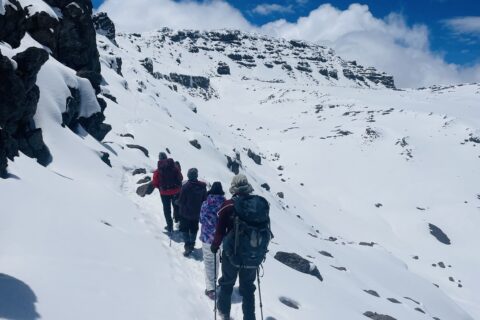 As we made our way up, few groups warned us about snow on the trail up ahead. Celeste had already informed us that there would be snow at Greendrop Lake. So we carried microspikes and a pair of snow boots for Kavya. But after these repeated “warnings” from well-intentioned hikers, I started wondering – “Do we need snowshoes? How bad is it?”