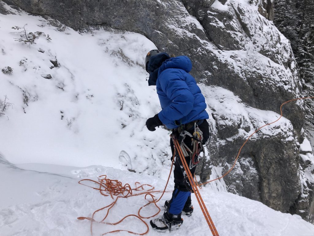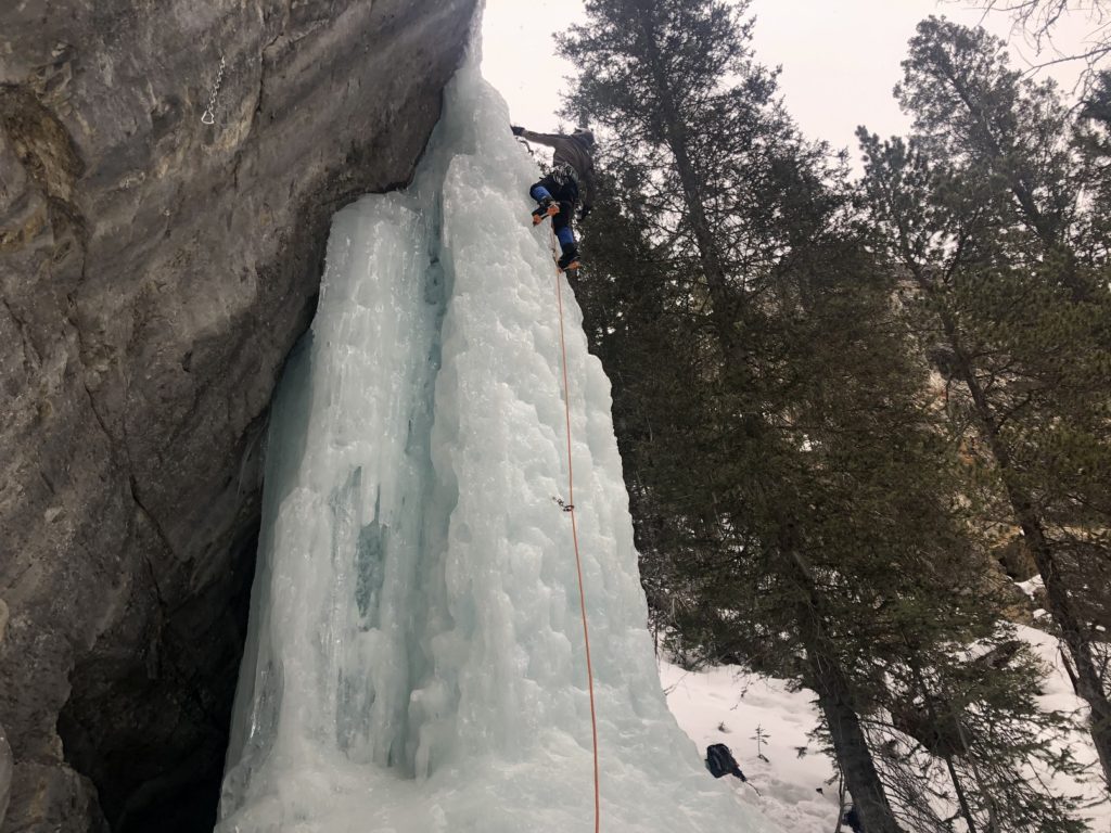 Rohan took the lead on Hers and did a great job traversing left to the bolt over some thin ice. He took his time assessing the conditions close to the anchor and was deliberate with each move. I top-roped Hers and cleaned the anchor.