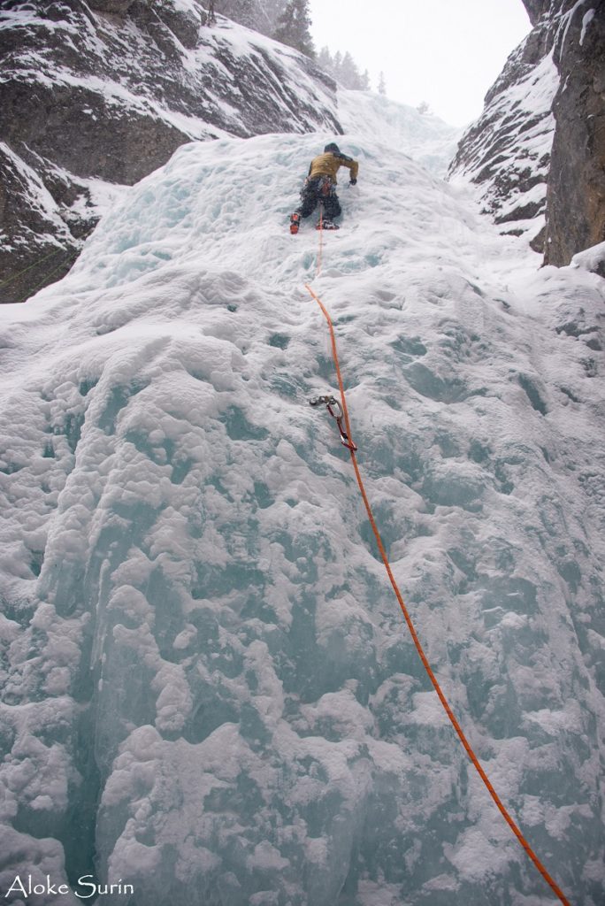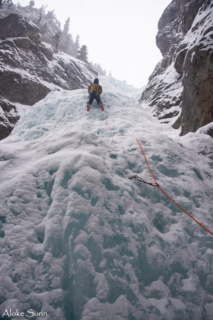 Rohan and I continued to lead a few more routes on the right flow for the rest of the day. One of the climbs to the right involved chandelier ice. It made some interesting moves and ice screw placements.