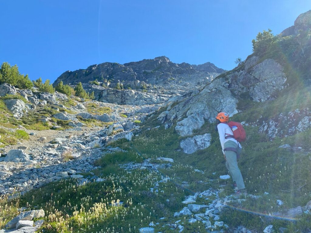 Before heading to the summit, we took some time to practice different types of alpine anchors using gear/rope and how to extend the anchor to get closer to the ledge.