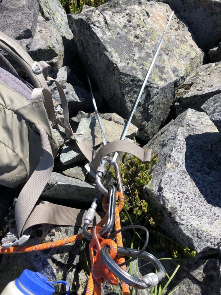 I secured myself to the anchor using a clove hitch, pulled the extra rope and put Jesse and Rohan on belay in guide mode. They both started climbing, and about 10-15 minutes into the climb, I felt a strong pull on the rope.