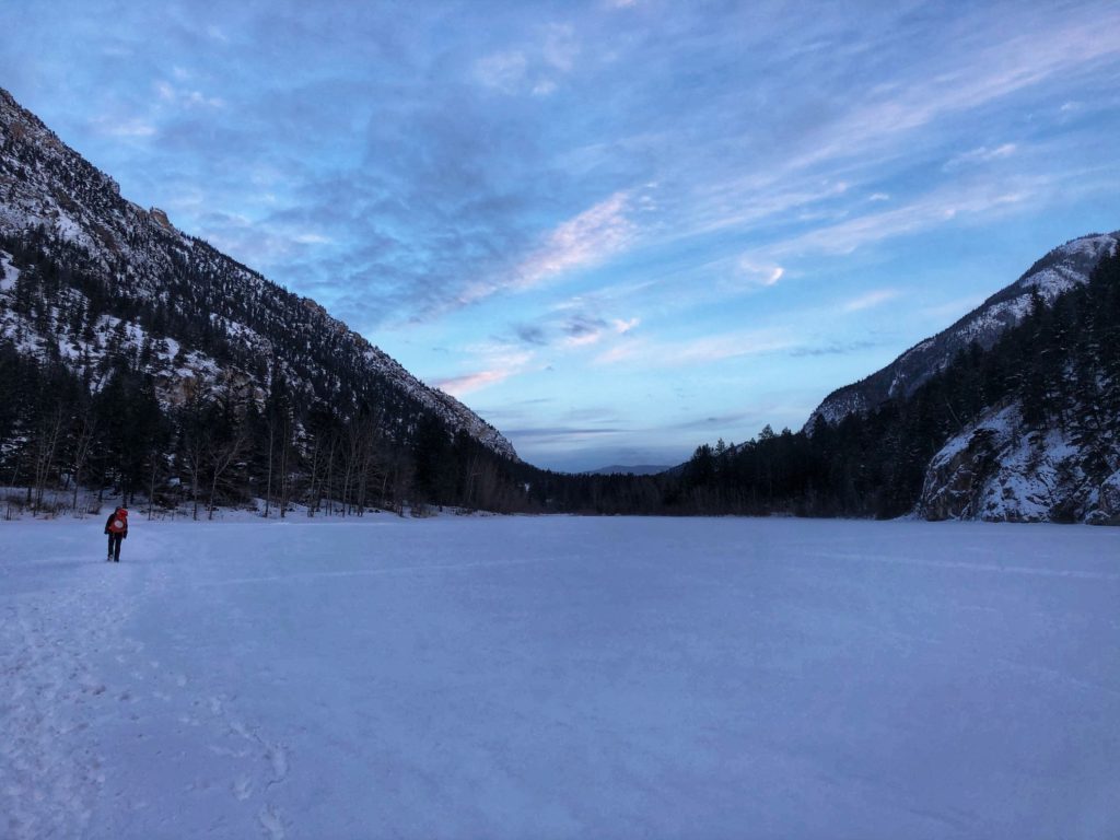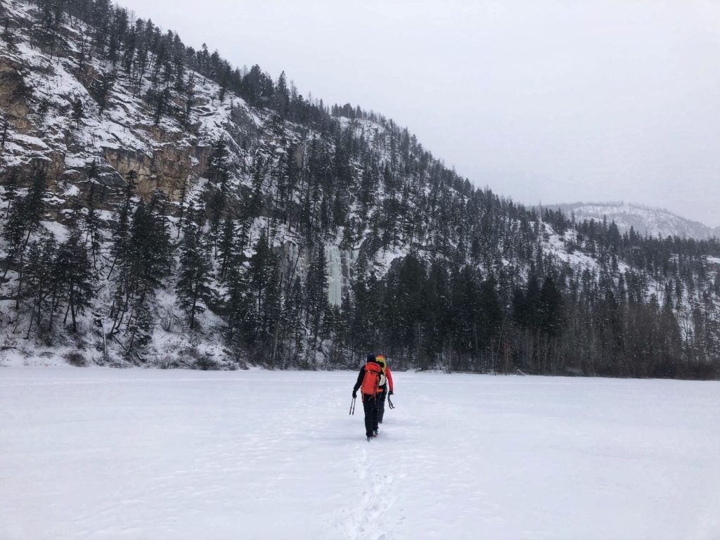 There are two Marble Canyons in BC. One is in the Kootenay National Park and has some amazing ice climbs as well. Marble Canyon Provincial Park that we went to is in the Pavillion Mountain Range, around 50 km north of Lillooet, BC. Over the last few years, I have been here a couple of times, and it provides easy access to some ice climbing routes. It is a five-minute walk across the frozen Crown Lake to access the cliffs from the parking lot.
