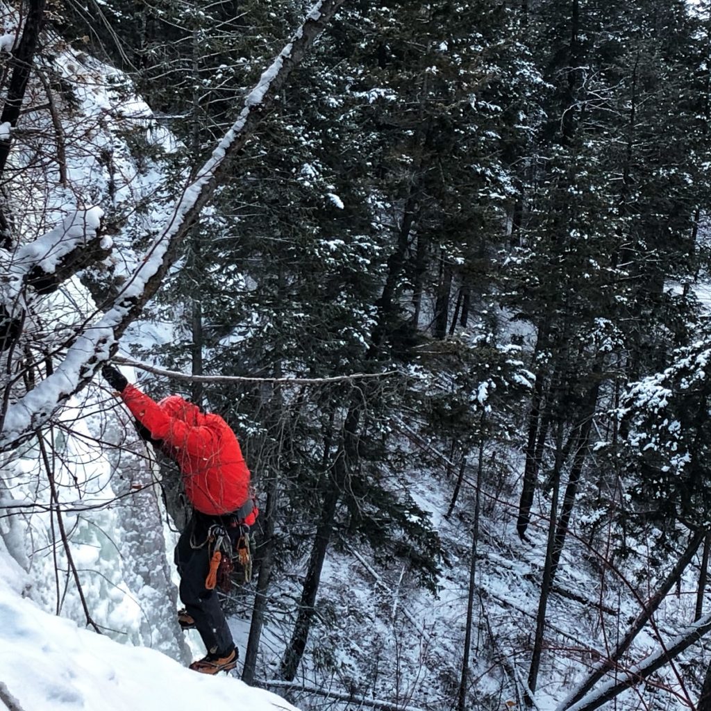 It was almost 10 am by the time we geared up and made our way to the wall. The temperature was -13C. I had climbed here before in -20C, so I was better prepared this time with layers and extra gloves.