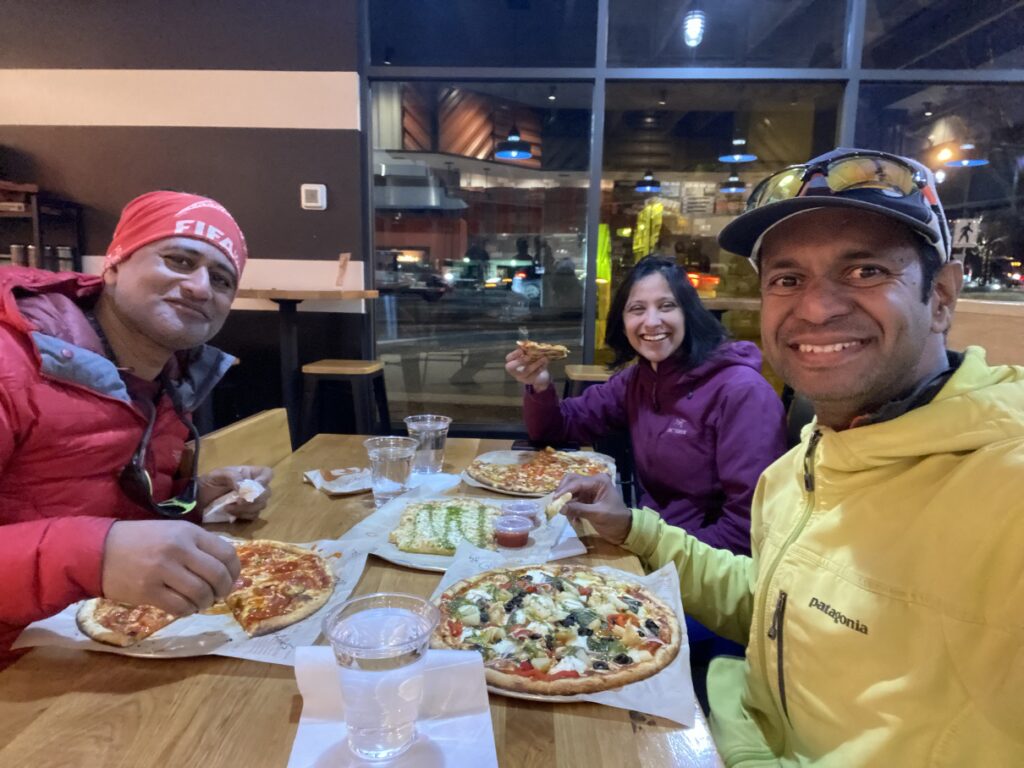 Within the first few minutes, I felt a cramp in my left thigh and soon on my right thigh. I asked Neha and Bala to go ahead while I straightened my leg and drank some water. I took it slow, and thankfully, I didn’t feel the cramps again. As Neha said, it was likely the movement after the long break. I should have warmed up for a few minutes.