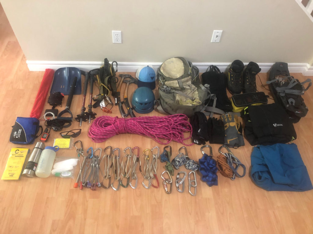 Rohan put together an online gear list for the group, which made it easy to pack. Jesse and Rohan would bring their ice screws while Rohan and Ankit got their cams. Once everything was packed, I was surprised to see the weight at 41 lbs, and I still had about 2-3 lbs of water/food to pack.