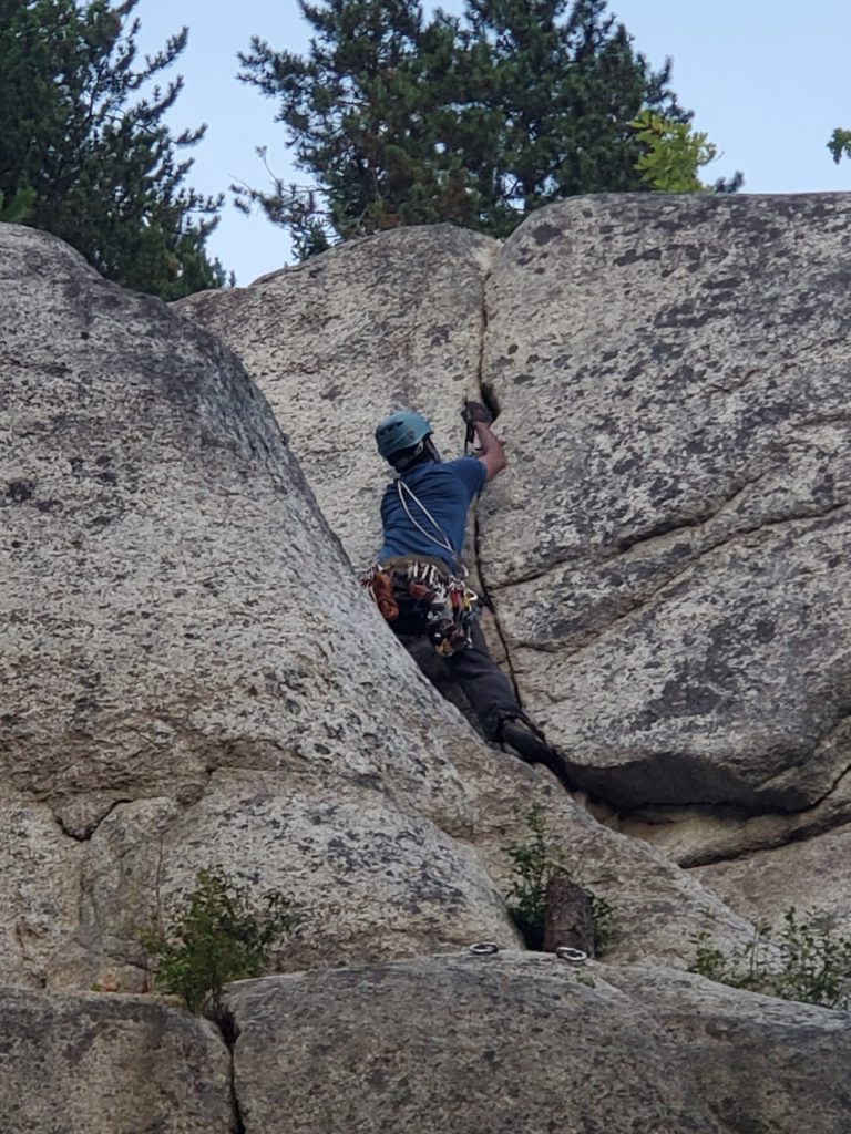 The 5.9 pitch was pretty good and I was a bit overconfident as I made my way up the climb. Soon I found myself struggling and I was second guessing each move. I slowed down and took my time to see all the features on the route. Eventually I got up, but had learned an important lesson – never underestimate any climb.