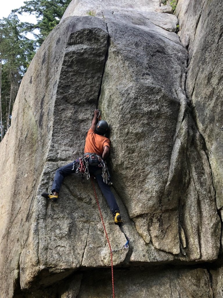Since moving to Vancouver, I mainly climbed trad but never had any goal as such. Over the last few years, I had done some climbs from the Top 100 Squamish Climbs list, some multi-pitch climbs on The Chief and random cragging days. I always led single-pitch climbs and was comfortable at the grade, but felt kind of stuck.