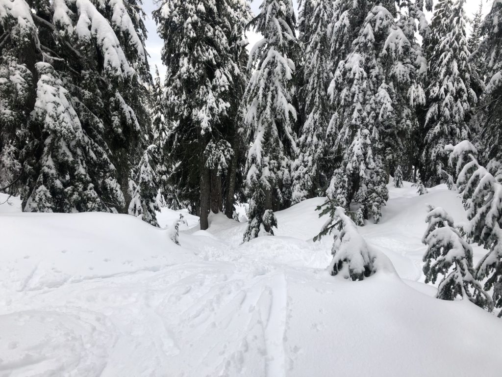 We skinned along the Mount Seymour Road till the trailhead and then got on the Mount Seymour Trail.