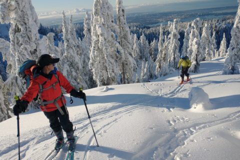 Cypress Mountain Resort closed for skiing last month. However, there is still a good amount of snow on the mountains, and it makes for a good after-work backcountry skiing workout at the resort. Lily had already made a few trips, and I joined her last Friday. The plan was to skin up to Mount Strachan’s south summit and ski down the runs on the mountain’s southwest side.