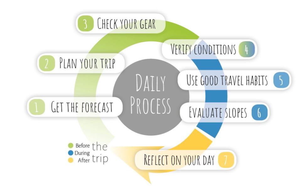 Now I could combine trail and terrain information with the avalanche forecast to plan my trip before heading out. Avalanche Canada highlights these items as part of The Daily Process.