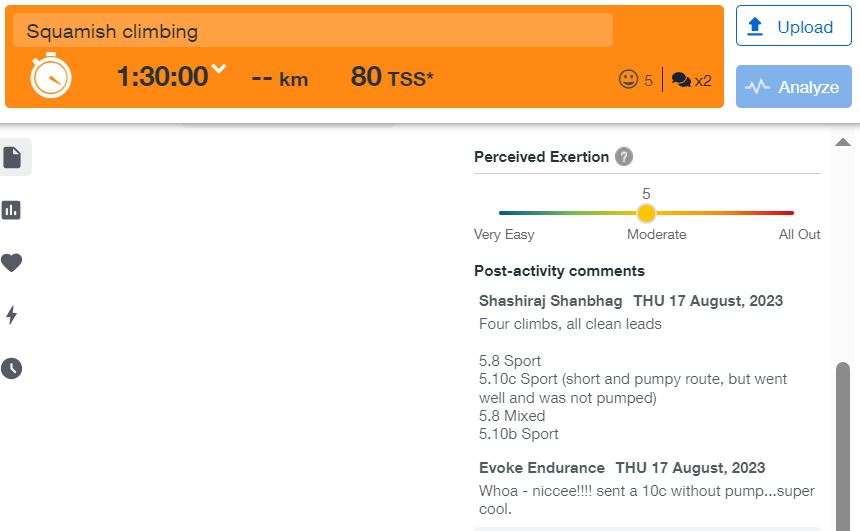Each of these workouts came with detailed instructions and, in some cases, links to instructional videos. These details were very helpful in completing the workout as intended. After the workout, I would update Training Peaks with my comments. Seth would soon review, provide feedback, and change the following week’s plan if needed.