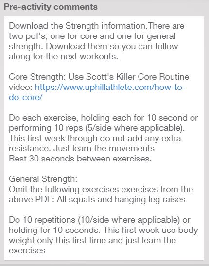 Just having goals for the year and talking to Scott had upped my commitment level. I also signed up for a Training Peaks account, as it is required to access any Uphill Athlete training plan.