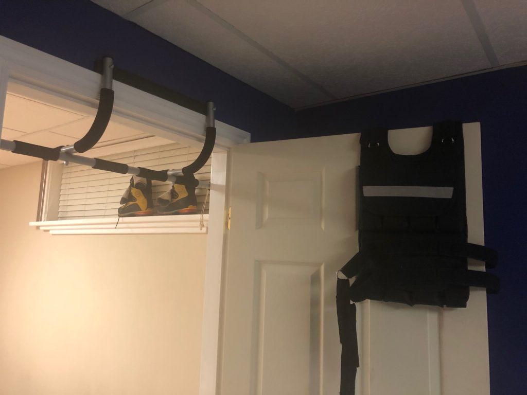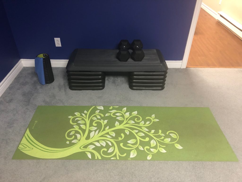 COVID restrictions were in effect, and my community center gym was closed. I could do my aerobic workout outdoors but ended up buying some gear for strength training at home. It was a very basic setup with a Yoga mat, two 25 lb dumbbells, a step platform, a pull-up bar and a weight vest. I also had a foam roller and an elastic band that I used on rest days.