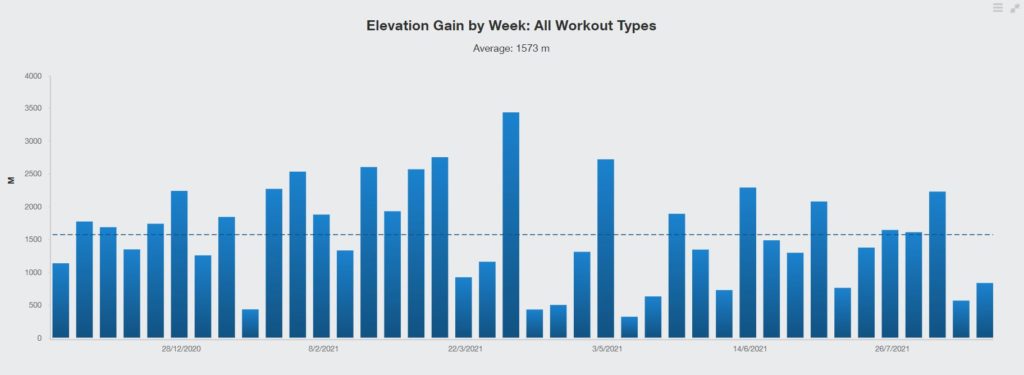 Total Elevation Gain: 62,920 m; Avg. Elevation Gain/Week: 1573 m