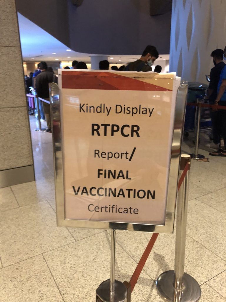 It took us close to two hours to get our bags. Thankfully, we had booked our flight with more than four hours layover. Soon we realized that we couldn’t do the domestic transfer as we didn’t have a boarding pass for our next flight. We had to exit the airport and get in line to check-in for the domestic flight. The agent glanced at our RT-PCR tests and then checked us in.