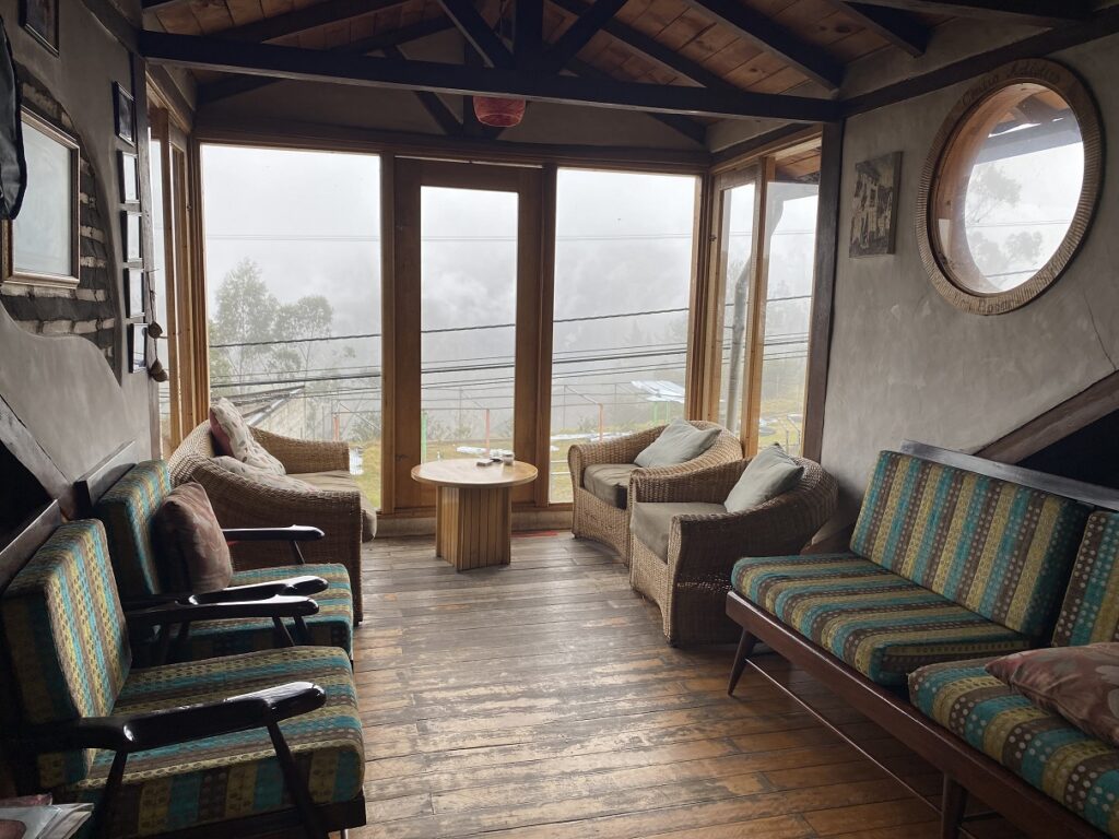 It was still raining, and it was cold at an elevation of around 3200 m. We all ordered some hot chocolate, which was the best we had in Ecuador. We spent most of the evening in the main building, which was well-decorated, cozy and had a fireplace.