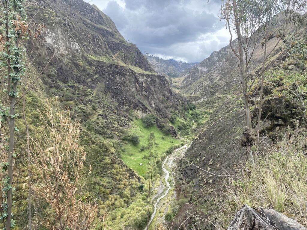 We quickly gained some elevation and soon had a beautiful view of the Toachi Canyon. It was a slow climb up the switchbacks. Kasturi’s pace slowed, and she had to take several breaks. It was a combination of altitude (3000 m) and stomach pain.