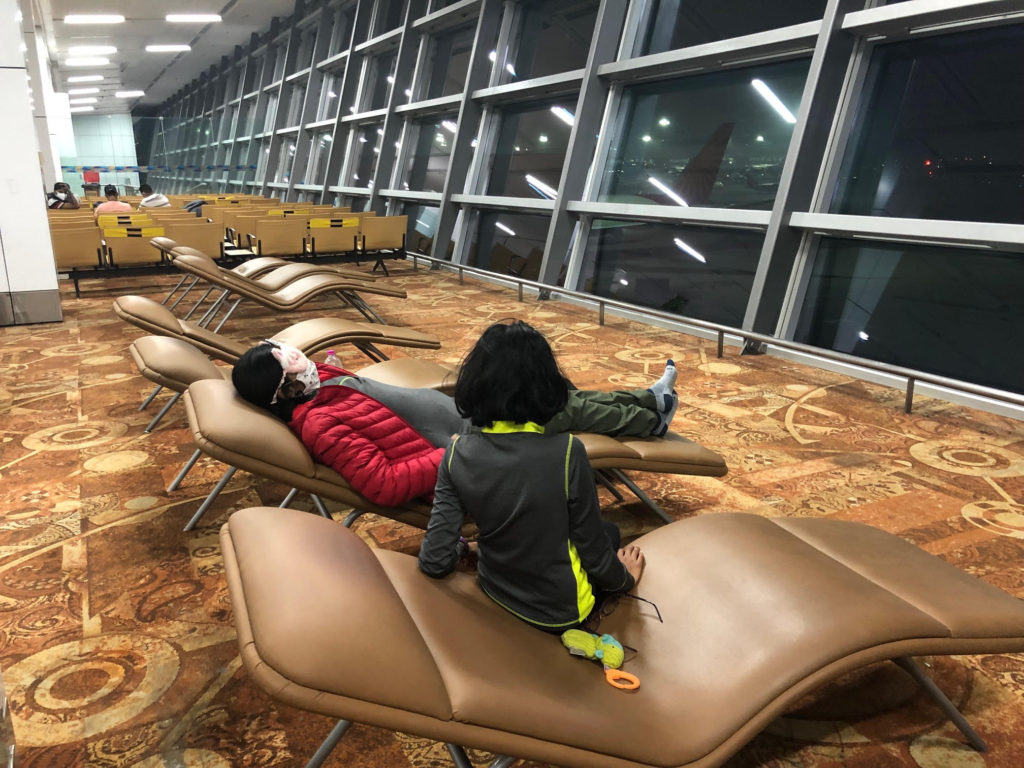 After clearing security and immigration, we had dinner. Finally, past midnight, we found a place to lie down near Gate 14. After a six-hour rest, we boarded our flight and took off for Vancouver around 7:30 am.