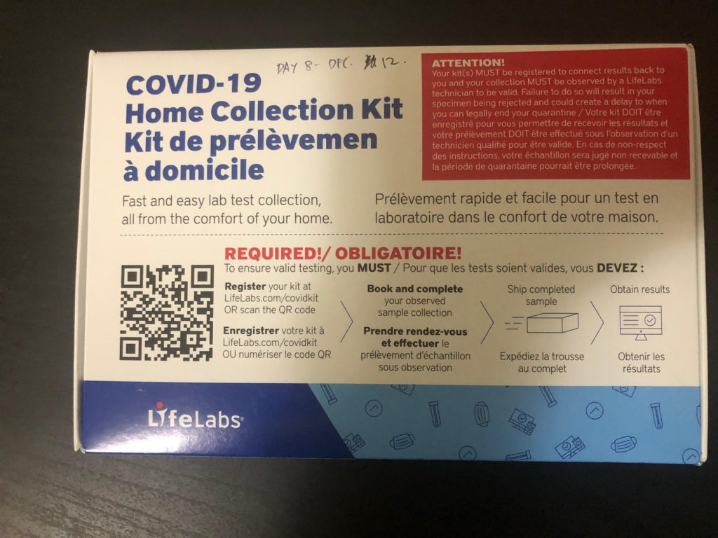 Dec 13 update: After registering the kit online, we were able to go to our local Shoppers Drug Mart with our home collection kit and provide the sample. Lifelabs collected the sample from Shoppers Drug Mart and we got results within a day. Negative again.