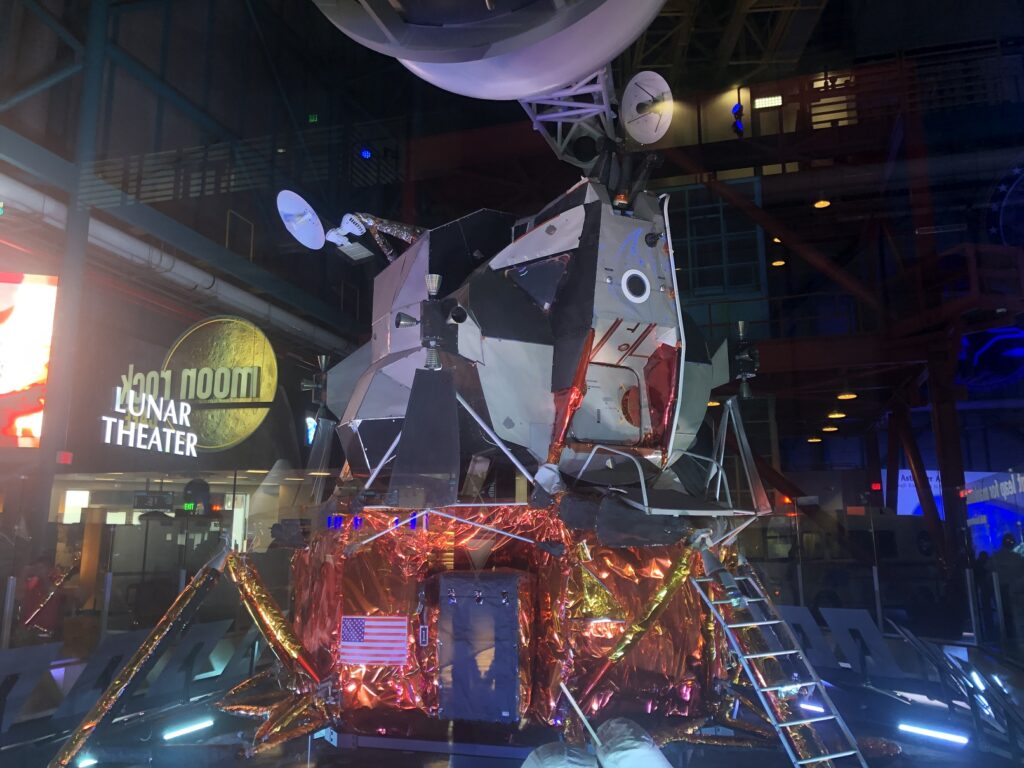 Exiting the Lunar Theatre, we entered an exhibit that included spacesuits, rocks from the Moon, a command module and other items from Apollo Missions.
