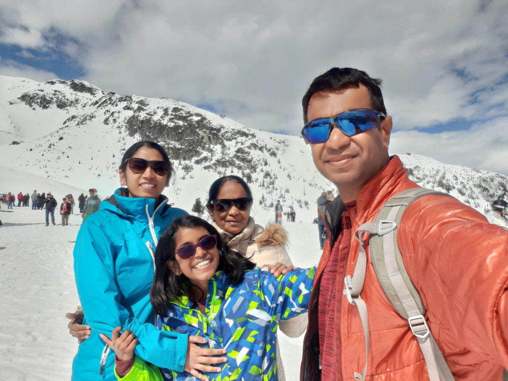 As we approached Blackcomb, watching skiers all over the mountain was very exciting for mom. We had hoped she would be able to see Kavya ski sometime but couldn’t make it happen this season.
