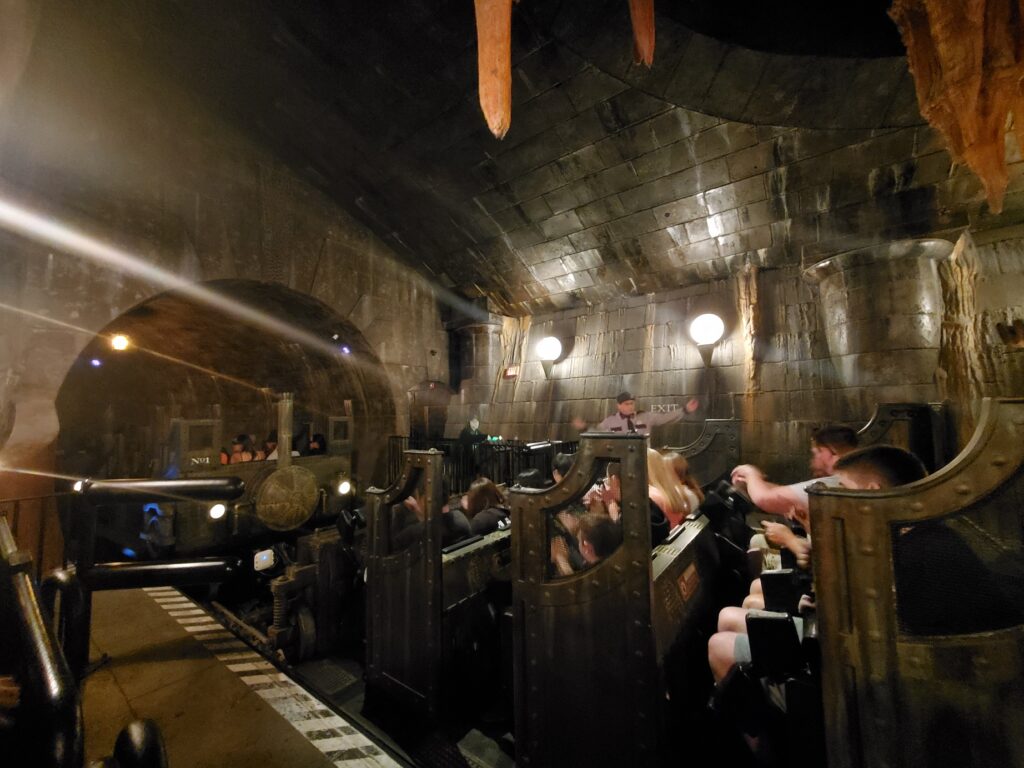 Harry Potter and the Escape from Gringotts is a popular ride, and we did this ride twice over two days we were in this park. The Gringott’s Bank hall, with its massive chandeliers, is impressive.