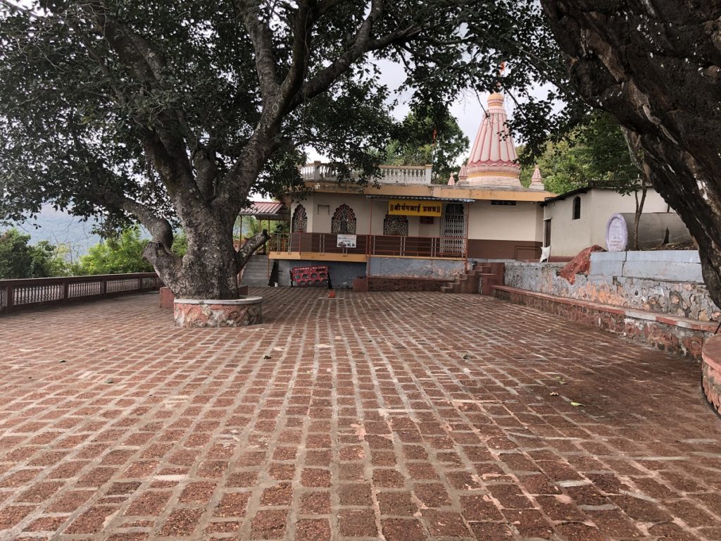 The steps continue beyond the temple and soon connect with the Ajinkyatara Paschim Darwaja (Western Door) Road. From the Adalat Wada Road, it gains about 100 m in less than half a km.