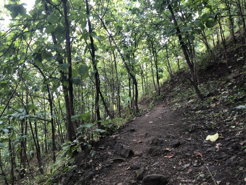 Right next to the temple a trail went up the mountain but it didn’t seem to be well used. I asked Kasturi and she was not aware of it. We decided to explore it a bit further and were surprised to find a nice shaded trail.