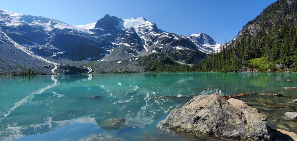 About an hour and fifteen minutes into the hike, we arrived at the Middle Joffre Lake.