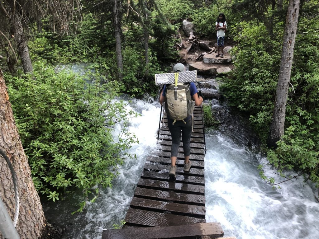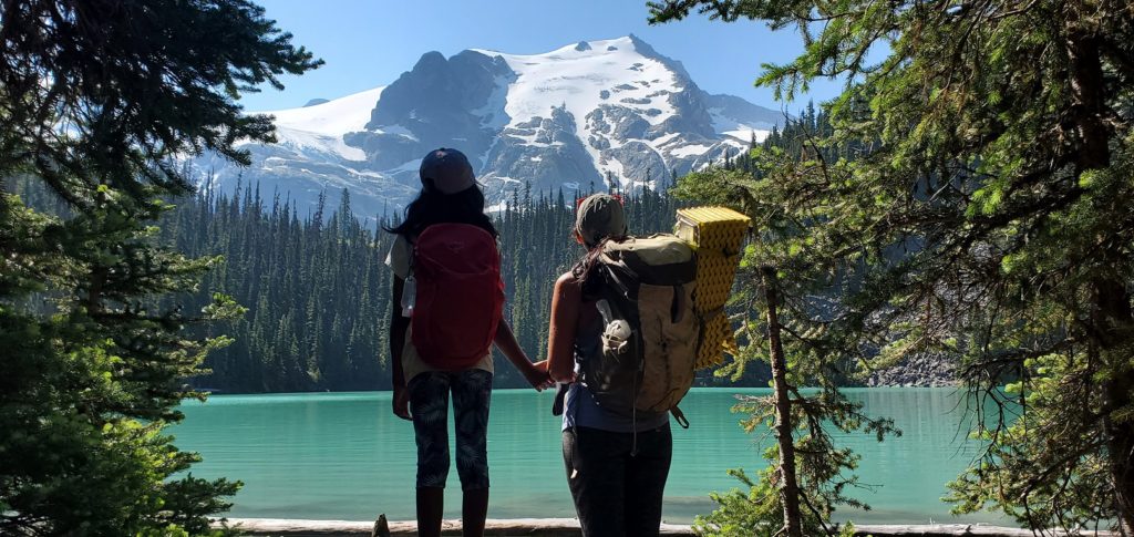 Upper Joffre Lakes is about 5 km from the trailhead and has an elevation gain of just under 400 m. Overall, it’s an easy hike. But, I wanted to minimize the gear we would be carrying in preparation for some of the other challenging trips we would be doing later in summer. We were able to fit everything we need in a 70+35L backpack. Kavya carried her own small pack with 2L of water, snacks and books.