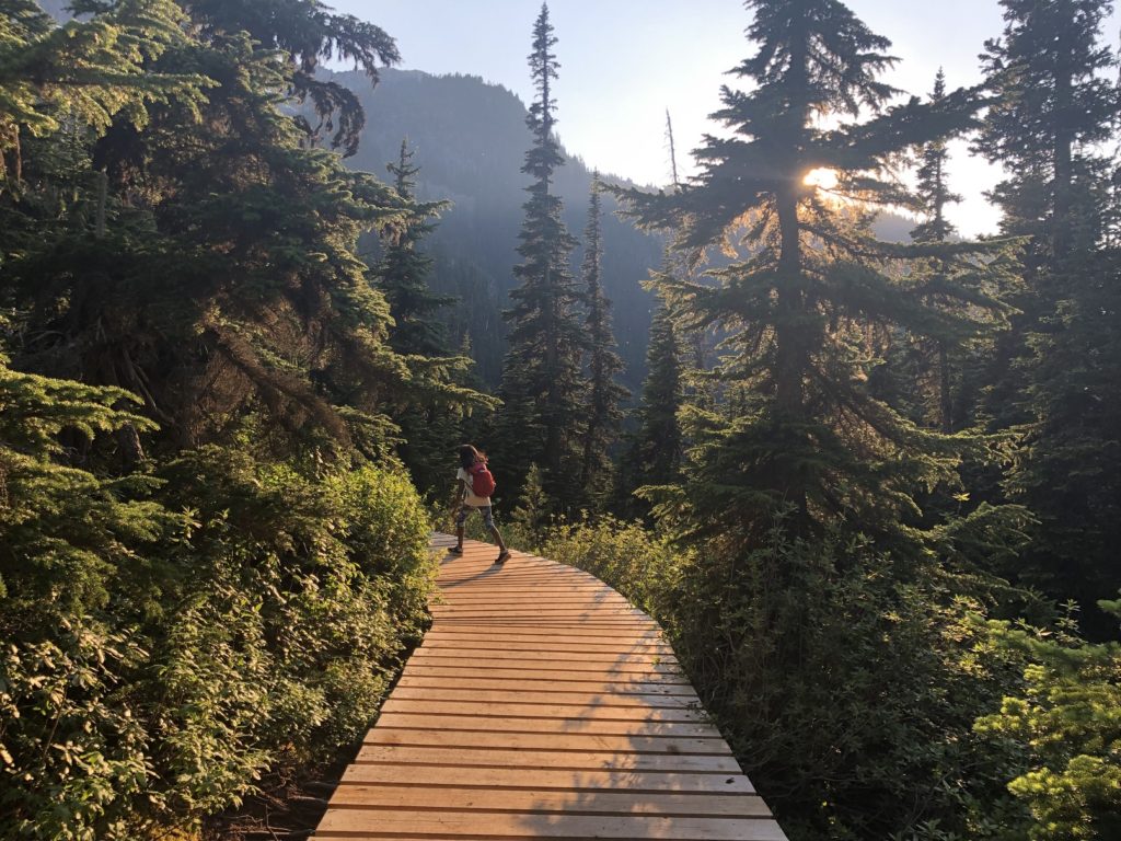 On June 30, we left early in the afternoon and arrived at the trailhead at Joffre Lake Provincial Park around 5 pm. Being a weekday, it was less busy, and we didn’t have an issue finding a parking spot. We shared our confirmation number for the booking with the Ranger and started our hike around 5:30 pm.