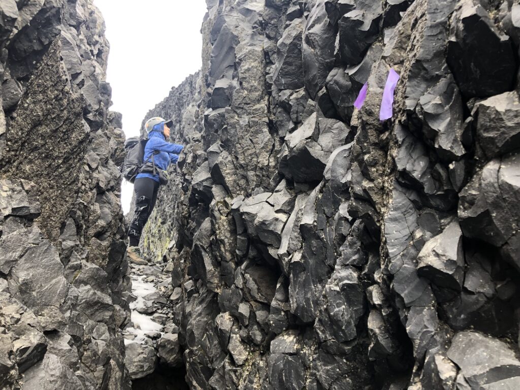 Anna suggested that we put on our helmets, and it was a good idea as some loose rocks came down the mountain as we traversed along the South side.