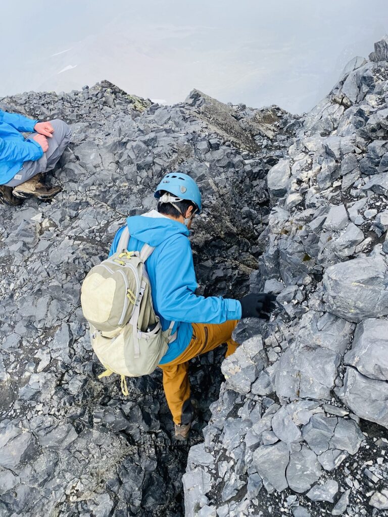 The final section of the hike to the summit is a scramble. There were at least two potential routes to go up. We took the route where we saw some flagging at the end of the traverse.