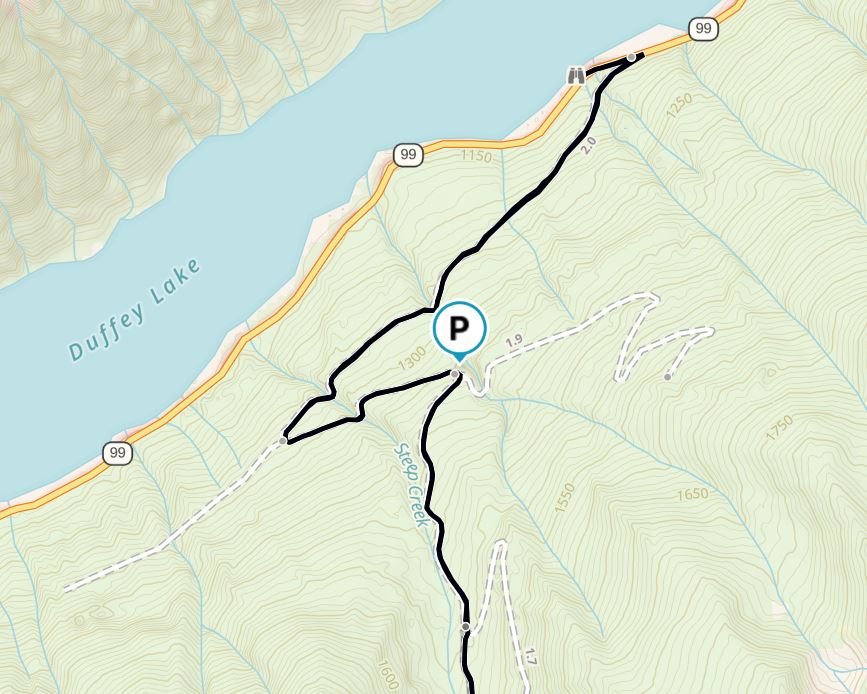 We took a short break in Pemberton and reached the trailhead on Duffey Lake road around 10:30 am. The initial section of the hike was on Steep Creek Forest Service Road (FSR).