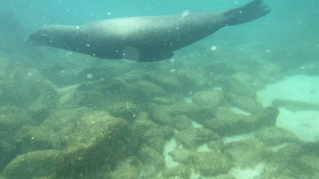 However, I still enjoyed watching sea lions, rays, and various types of fish. At one point, we even saw the divers in our group with their instructors. While all of us floated on the surface, the Greek swimmer dove deep, almost to the same level as the divers. Sealions seemed to be enjoying swimming with him as well – a true Aquaman. Our guide would dive with him and shoot him with the GoPro. They got some great footage.
