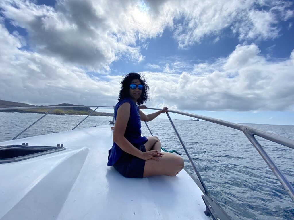 Now, back in paradise, Kasturi was watching, Kavya was cheering, while I stood watching the boat. Finally, after a couple of pep talks, I swam to the boat. It was not elegant, but I did it. I enjoyed it so much that I did it again. Finally, it was time for us to head back. Kasturi, Kavya and I spent some time on the deck of the boat, and it was a fun ride back.