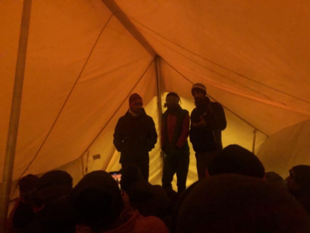 Just as we got into the dining tent, a hailstorm welcomed us. Later, Pramath came inside the dining tent and shared an update. Unfortunately, given the change in weather, we won’t be able to go to Thalotya, our next campsite, as the mules can’t go on icy trails. Instead, we would go to Gidara Bugyal top directly from Dhokrani and return via Thalotya campsite.