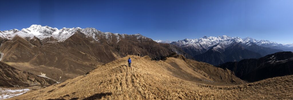 Kuari Pass trek was easier than this trek at around 27 km (including the hike down from Auli to Joshimath) and close to 2000 m elevation gain. I did it in under 11 hours last year and wondered if Gidara Bugyal Trek would be doable in a day if one is well-acclimatized and the trail is snow free. I asked Kuldeep this question, and he responded that locals do it in about 13-14 hours. That would be an exciting challenge.