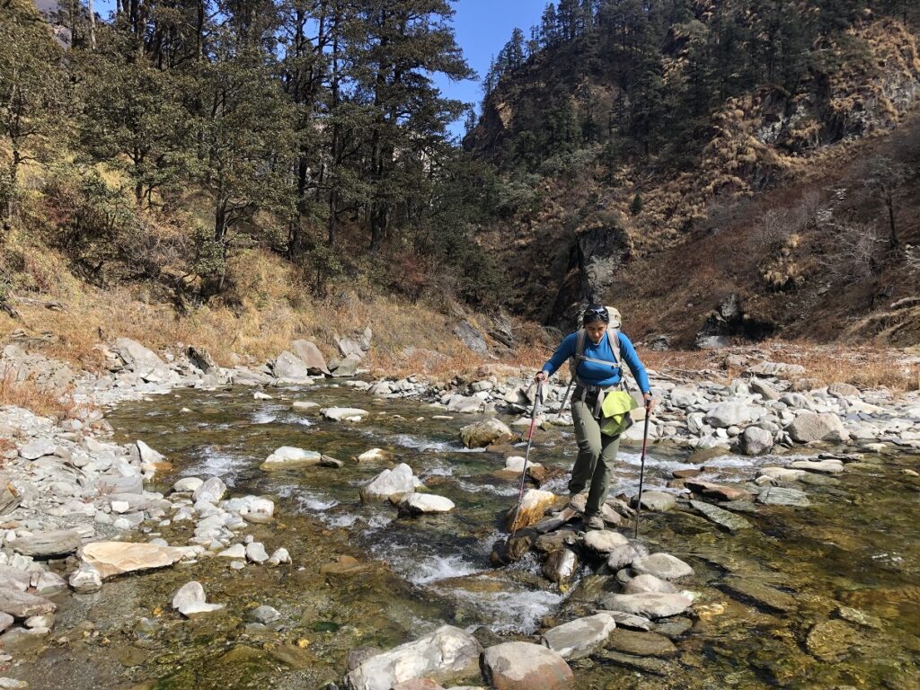It was rolling hills initially, and then we dropped down to a river. Luckily, the water level was not too high, and we didn’t have to take off our shoes like the previous India Hikes group that crossed it two weeks back.