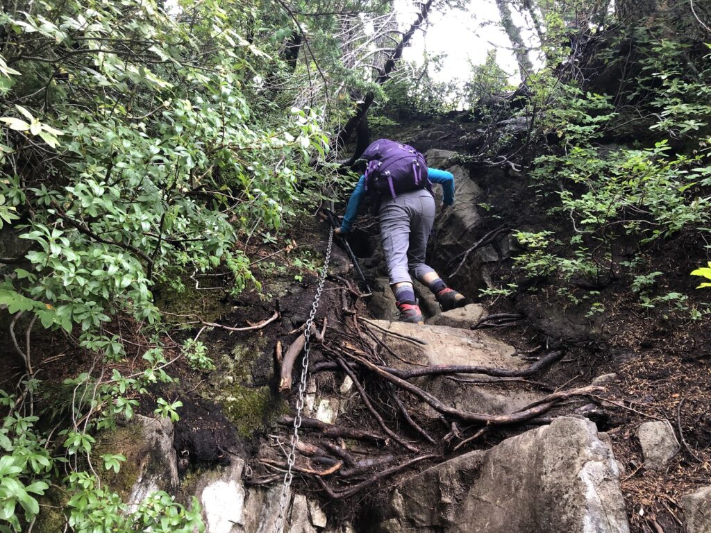 The trail now was much steeper and slippery in some sections. The steepest sections had chains for support.
