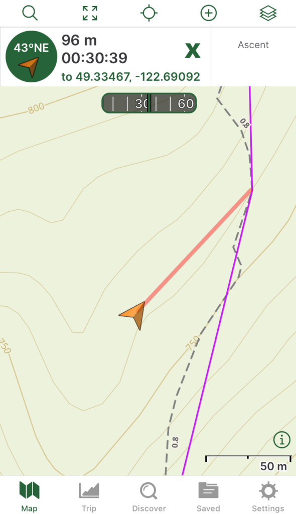 I marked a point on the Munro Lake Trail and used the “Guide Me” feature to get a straight line from our location to the trail. Then I handed over the phone to the kids and asked them to follow the line and “lead us” back to the trail.