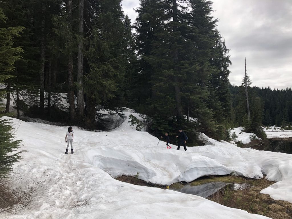 After the Munro Lake-Village Trail junction, there was some snow on the trail. It was soft, and we didn’t need microspikes. It was really muddy in some sections.