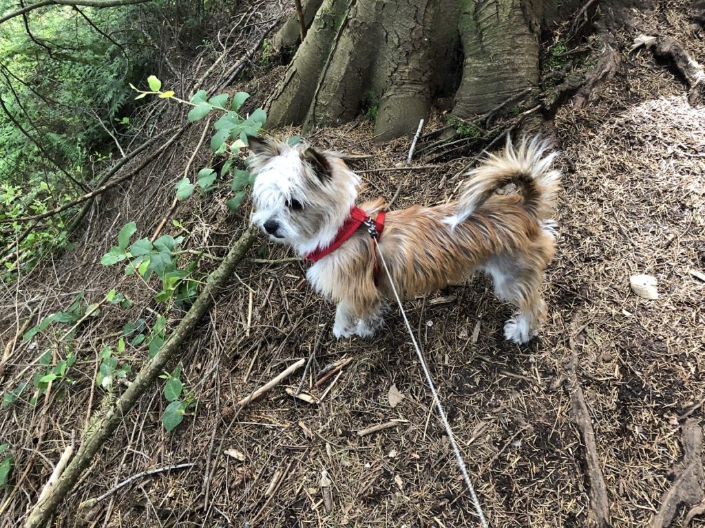 Parag and Shilpa had brought their dog, Joey, on the hike. About halfway down, I asked if I could hike with Joey and got the leash. I have no experience, but Joey is so tiny; how hard can it be?