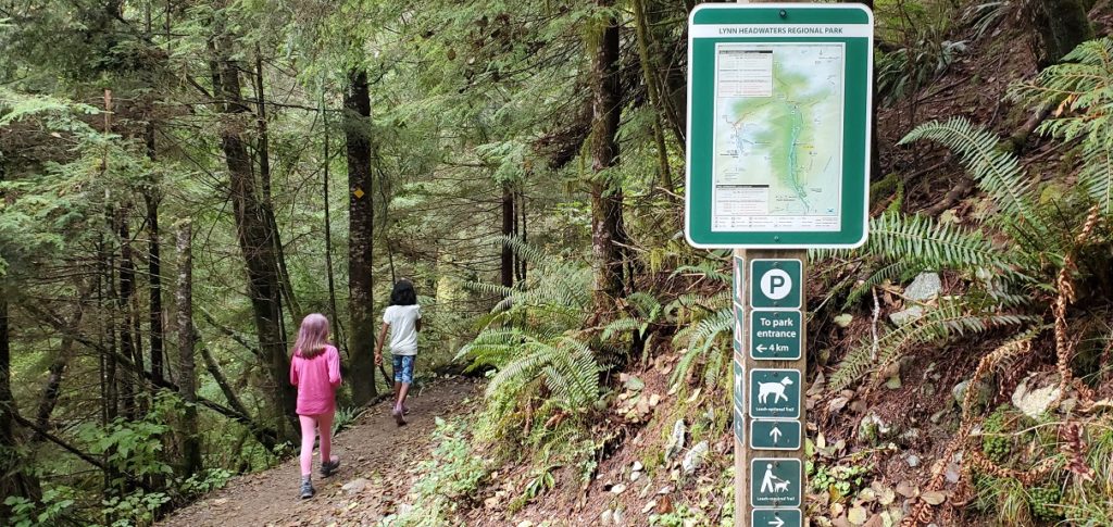 After a scenic tour along Lillooet Road, we finally looked up directions on Outdoor Vancouver. We arrived at the Lynn Headwaters Regional Park around 2 pm. It was a busy afternoon, but luckily we found a parking spot right at the trailhead.