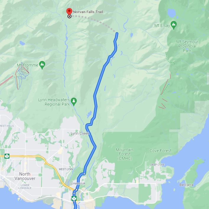 We left home after lunch around 1 pm. Usually, I check Vancouver Trails or Outdoor Vancouver website for directions to the parking lot. This time we just searched for Norvan Falls Trail on Google Maps. It led us to Lillooet Road and eventually nowhere.