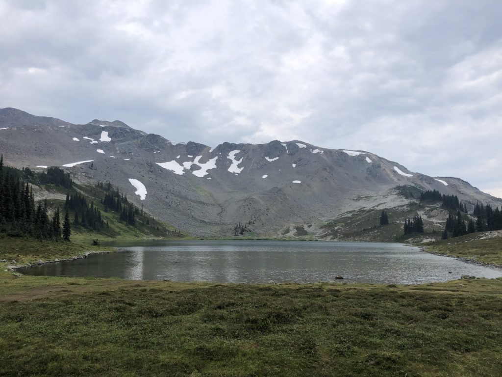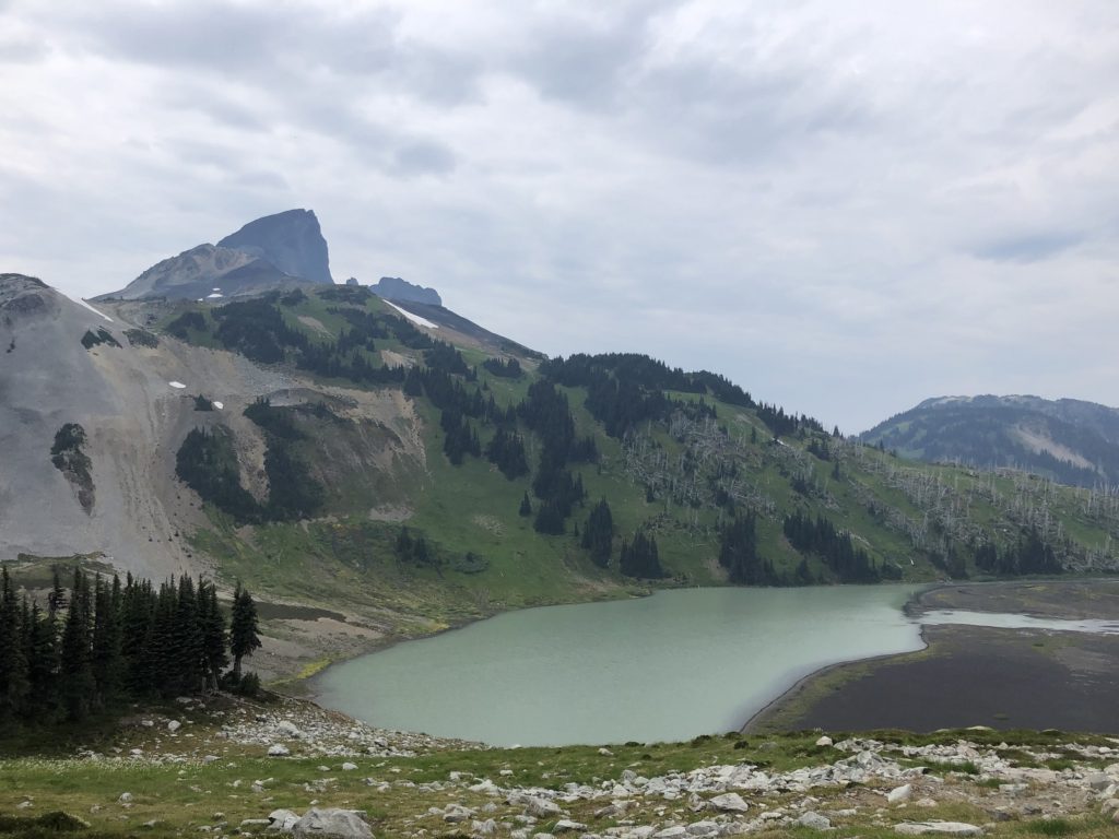 Before I accessed the ridge, I hiked by Black Tusk Lake to my right and Helm Lake to the left. If I had more time, I would have loved to spend some time next to these beautiful lakes.