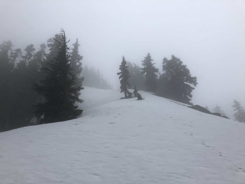 We had a good winter this year, and there was still a lot of snow on the mountain. We had snow right at the trailhead. But after a few more warm days, it would be slush snow.